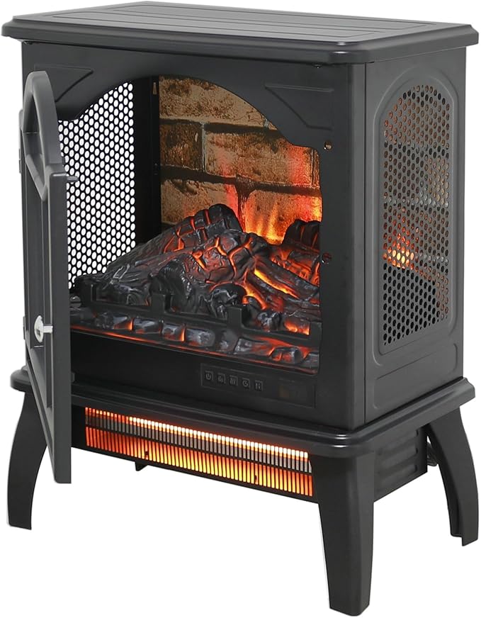 SOFTSEA 18" 3D Flame Electric Infrared Quartz Fireplace Stove with Remote Control, Back Wall Tile Design Flame Colors Effect with 4 Adjustable Brightness, 1500W Heater and 11 Temperature Settings