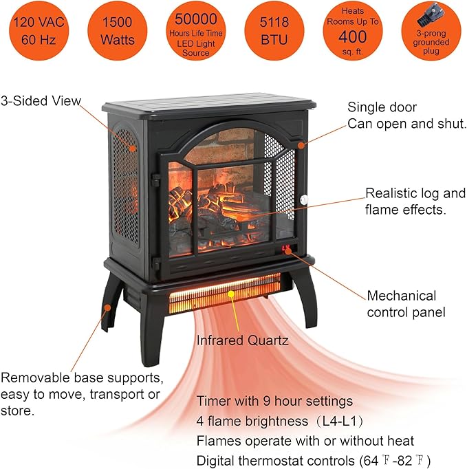 - Easy Installation: Designed with four sturdy feet, the stove is simple to install with just three screws. The removable feet making it a practical and cost-efficient addition to any home.